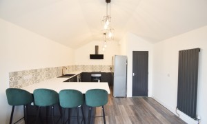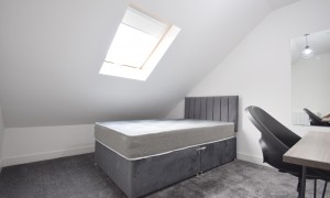 Introducing an exquisite 6-bedroom apartment located on Woodville Road, meticulously designed and finished to an exceptionally high standard. Spanning over three floors, this remarkable property features three spacious bedrooms on the first floor and an additional three on the second floor, ensuring a comfortable living environment without any ground floor bedrooms. The entrance to the building is both secure and discreet, providing residents with peace of mind. Each large double bedroom is thoughtfully equipped with built-in wardrobes, luxurious fabric beds, high-quality mattresses, and dedicated workspaces complete with desks and chairs, as well as stylish wall-mounted mirrors that enhance the overall aesthetic. 2. The heart of this apartment lies in its expansive lounge and kitchen area, which exemplifies both space and quality furnishings. The large breakfast bar, adorned with elegant velvet fabric stools, serves as a perfect gathering spot, complementing the matching sofa that faces a state-of-the-art smart TV, ideal for relaxation and entertainment. This stunning property is highly recommended for viewing, as it offers a unique blend of modern luxury and functional living, making it an exceptional choice for those seeking a sophisticated urban lifestyle.