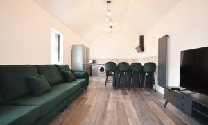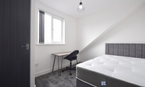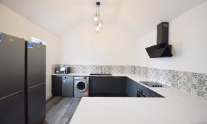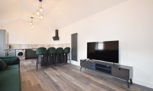 Introducing an exquisite 6-bedroom apartment located on Woodville Road, meticulously designed and finished to an exceptionally high standard. Spanning over three floors, this remarkable property features three spacious bedrooms on the first floor and an additional three on the second floor, ensuring a comfortable living environment without any ground floor bedrooms. The entrance to the building is both secure and discreet, providing residents with peace of mind. Each large double bedroom is thoughtfully equipped with built-in wardrobes, luxurious fabric beds, high-quality mattresses, and dedicated workspaces complete with desks and chairs, as well as stylish wall-mounted mirrors that enhance the overall aesthetic. 2. The heart of this apartment lies in its expansive lounge and kitchen area, which exemplifies both space and quality furnishings. The large breakfast bar, adorned with elegant velvet fabric stools, serves as a perfect gathering spot, complementing the matching sofa that faces a state-of-the-art smart TV, ideal for relaxation and entertainment. This stunning property is highly recommended for viewing, as it offers a unique blend of modern luxury and functional living, making it an exceptional choice for those seeking a sophisticated urban lifestyle.