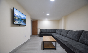 This exceptional nine-bedroom house is situated in a prime location, offering an unparalleled living experience for those seeking both comfort and convenience. Each of the nine spacious double bedrooms is designed with modern living in mind, featuring elegant laminate wood flooring, complete furniture sets, and high-speed Cat 5 internet connectivity, ensuring that residents can enjoy both style and functionality. The expansive modern kitchen is perfect for culinary enthusiasts, while the generously sized living area, equipped with custom-built sofas and a wall-mounted television, provides an inviting space for relaxation and social gatherings. Additionally, the property is equipped with three well-appointed shower rooms and a separate toilet on the ground floor, enhancing the overall convenience and accessibility for all residents. Available to a group of 7, 8 or 9.