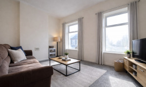 This well-presented two-bedroom first-floor flat offers bright and comfortable living in a convenient location. The property features a spacious separate lounge, perfect for relaxing or entertaining, alongside a well-proportioned kitchen with ample storage and workspace. Both double bedrooms are generously sized and thoughtfully positioned well apart from each other, providing added privacy and flexibility for sharers, couples, or small families. Large windows throughout allow plenty of natural light to fill the home, creating a warm and inviting atmosphere. Ideally situated close to local bakeries, shops, and barbers, this flat combines practical living space with the convenience of nearby amenities.
